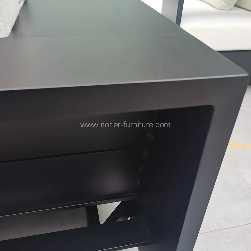 Produksjonsdetaljer om moderne minimalistisk svart aluminiumsramme utendørs sofa