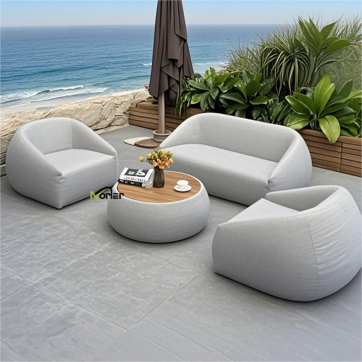3. Polstret utendørs sofa: En lat persons komfortopplevelse, med myke, tykke puter og hurtigtørkende materialer, noe som gjør det behagelig å ligge eller sitte.